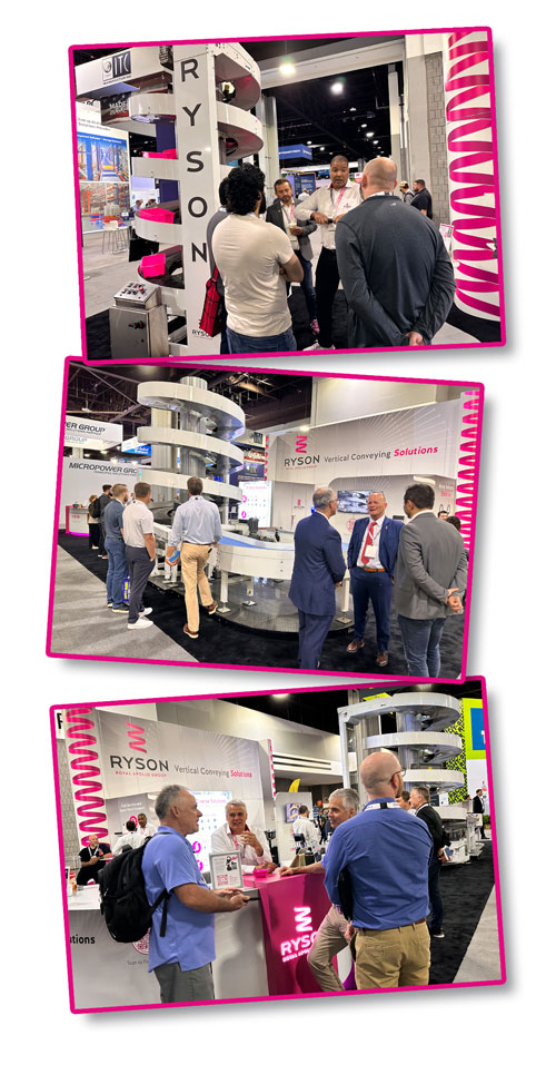 We designed our presence around one goal: helping operations move more product in less space. Our live demo loop highlights how Ryson Spiral Conveyor systems optimize vertical movement while maintaining a compact footprint. Visitors can experience smooth product flow, continuous operation, and the reliability that defines our equipment.